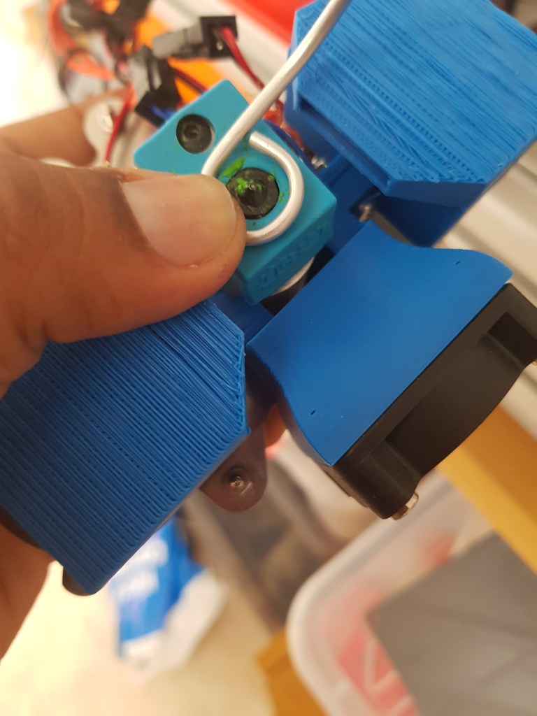 Just make sure that the bent tube sits snugly around the silicon sock near the nozzle. Then proceed to make holes in the tube with 1mm drill. Be careful with 1mm drill, it is easy to break.
