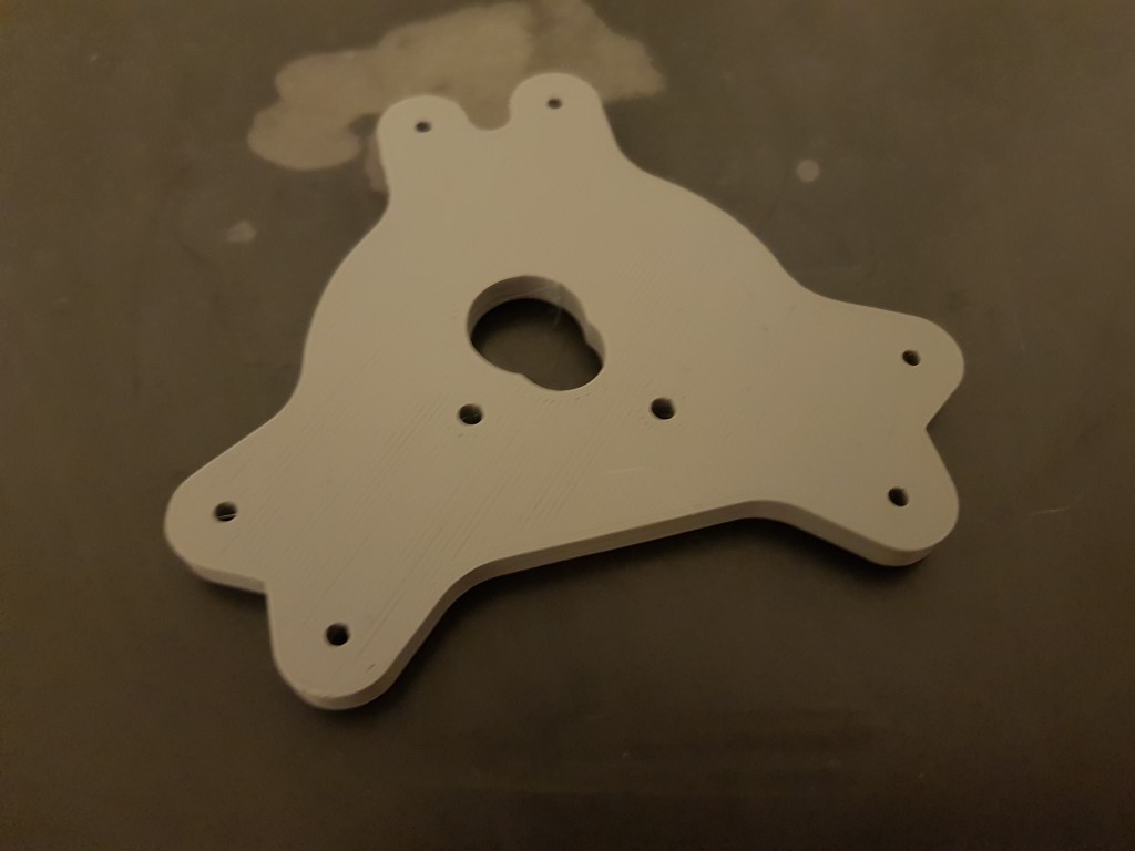As you can notice in the picture above, I had to change the effector and fan mounts because of kryo’s geometry. The effector plate is based on laser cut aluminium plate and the fan mount was designed by Lykle.