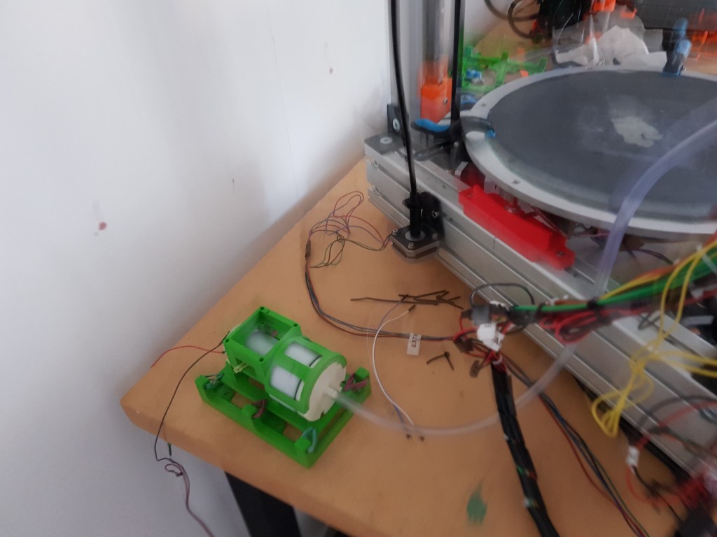 The aquarium pump vibrates a lot. It needs to have a proper mount and a cooling fan in case the pump heats up. Here is an excellent design from thingiverse. If you look at the picture below closely, the parts are attached to the motor using rubber bands to absorb the vibration. It has also a provision for a fan (not attached in the below picture) to cool the pump.