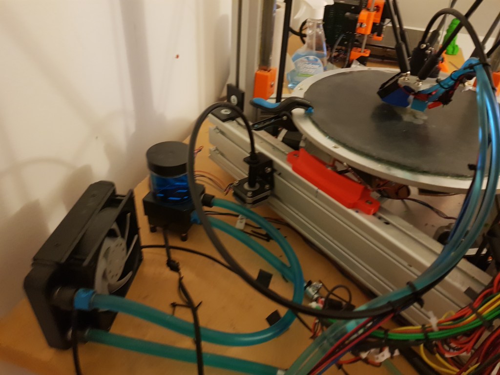 My conclusion regarding water cooling is that if you have some money to spend and don’t mind the extra learning experience (read as work), you can go for it. I did not see anything negative because of switching to water cooled heat sink. Maybe you have to put some effort in designing effectors and mounts but it reduces the weight of the effector system by a lot. Theoretically, you can attach a volcano nozzle and increase the print speed for faster prints.